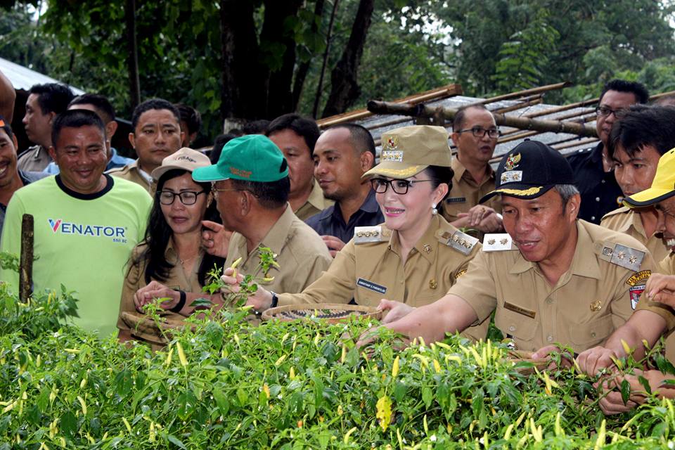 Kelompok Tani (Poktan) Buyungon, Kecamatan Amurang, Kabupaten Minahasa Selatan (Minsel) sukses menanam cabe rawit. Bupati Minsel Christiany Eugenia Paruntu dan Wabup Franky Donni Wongkar berkesempatan melakukan panen perdana, Selasa (14/3).