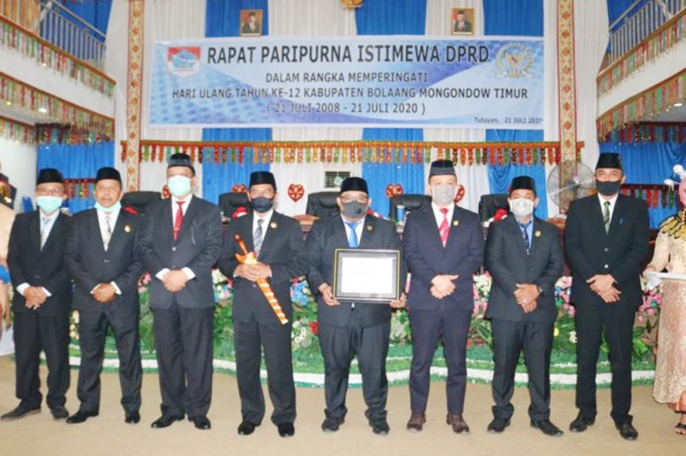 Memperingati Hari Ulang Tahun (HUT) Kabupaten Bolaang Mongondow Timur (Boltim) yang ke-12 tahun, Dewan Perwakilan Rakyat Daerah (DPRD) Boltim menggelar rapat paripurna istimewa di ruang rapat paripurna DPRD Boltim, Selasa (21/7).
