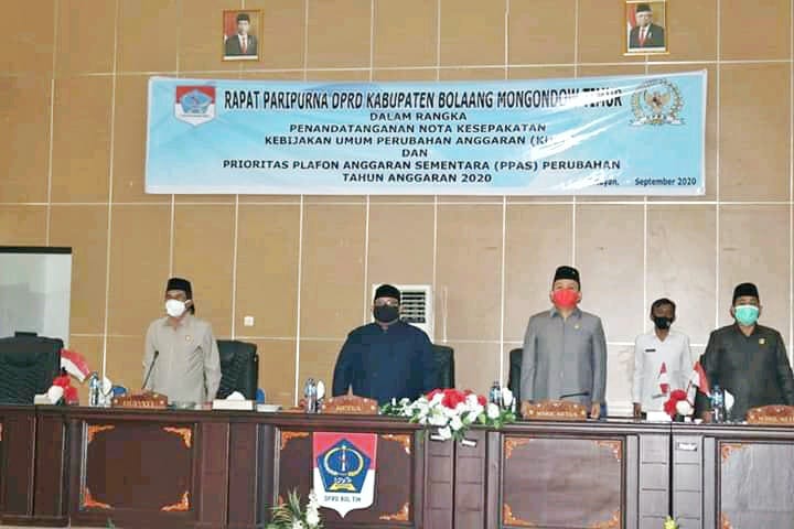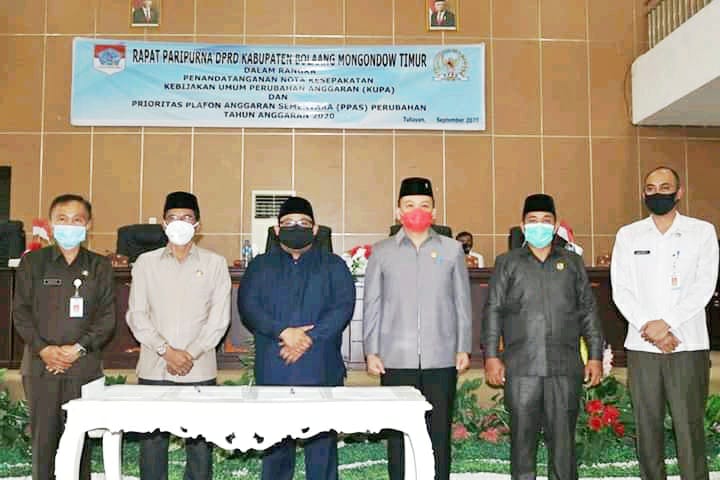 Dewan Perwakilan Rakyat Daerah (DPRD) Kabupaten Bolaang Mongondow Timur (Boltim) menggelar sidang paripurna penandatanganan nota kesepakatan Kebijakan Umum Perubahan Anggaran (KUPA) dan Prioritas Plafon Anggaran Sementara (PPAS) perubahan tahun anggaran 2020. Agenda ini digelar di ruang rapat paripurna DPRD Boltim, Rabu (16/9).