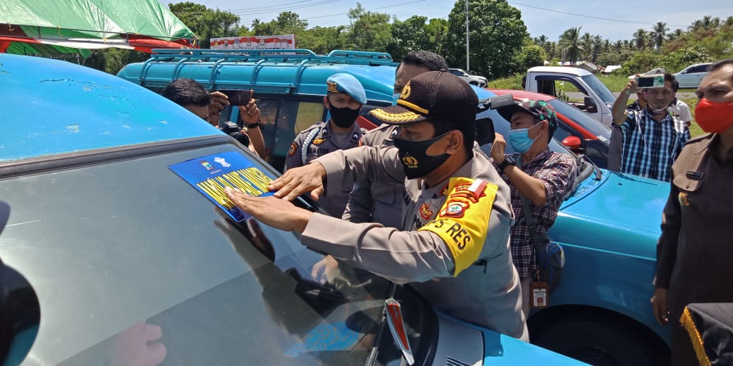 Acara tersebut dilanjutkan dengan pemasangan stiker “Ayo Pakai Masker” di sejumlah kendaraan oleh Forkopimda Boltim, kemudian pelepasan secara resmi peserta Gerak Sejuta Masker.