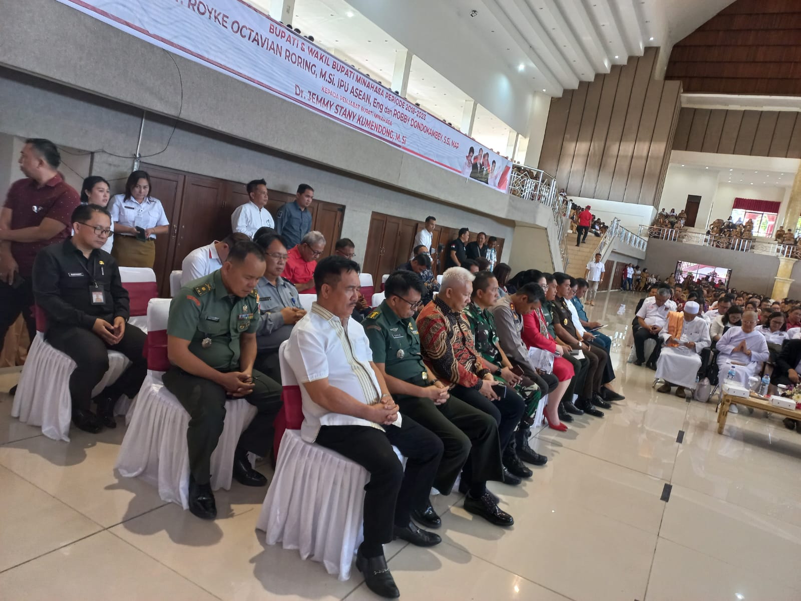 Selain Bupati dan Wakil Bupati ROR-RD, juga dihadiri Penjabat (Pj) Bupati Minahasa Dr Jemmy Stany Kumendong, M.Si serta hadir pula Forkompinda dan seluruh pejabat beserta ASN dan tokoh agama serta tokoh masyarakat. Sebelumnya diawali dengan ibadah oleh Ketua Sinode Pdt Hein Ariana, dan diikuti puji-pujian.