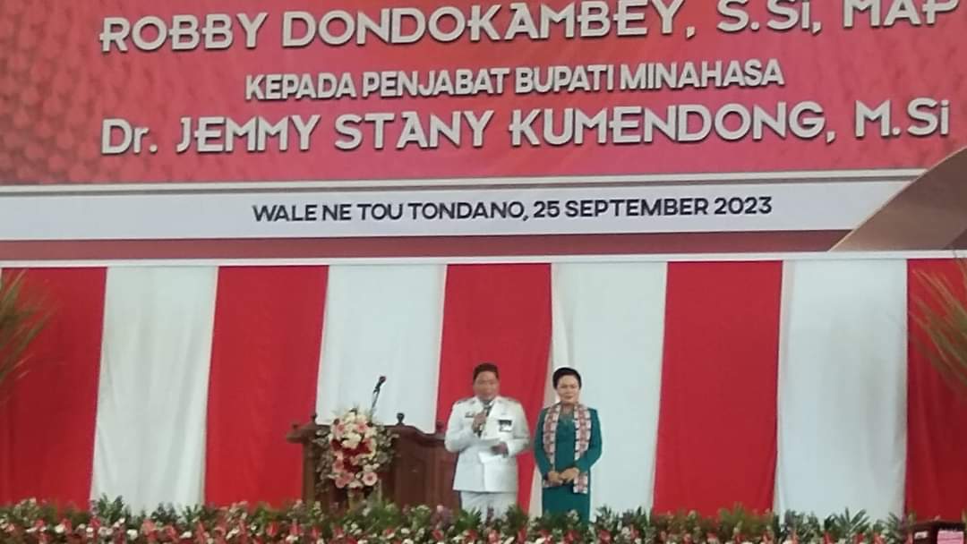 Pelaksanaan pisah sambut bupati tersebut berlangsung di Gedung Wale Ne Tou Tondano, Senin (25/9/2023) siang.