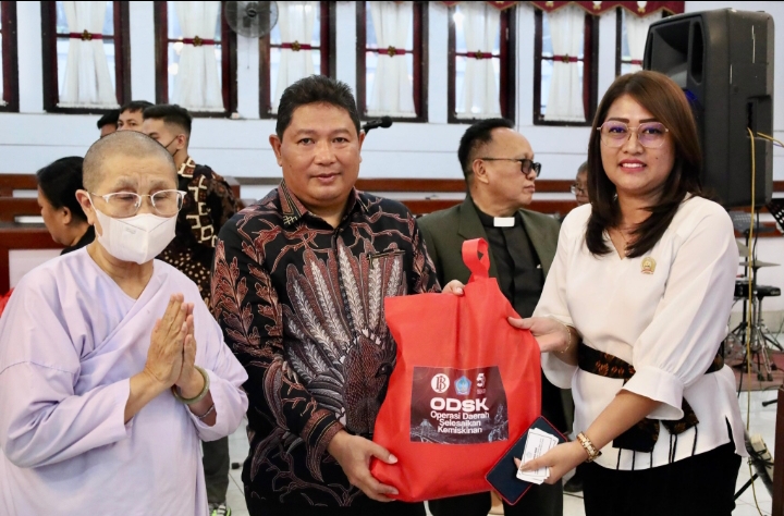 Pada kesempatan tersebut Gubernur Olly didampingi Wagub Kandouw, Sekprov Kepel dan Bupati Kumendong menyerahkan bantuan hibah rumah ibadah dan bantuan sosial kepada lembaga non pemerintah serta diakonia Natal. (Erwien Bojoh)