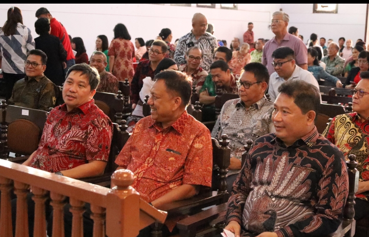 Foto: Gubernur Olly Dondokambey dan jajaran Pemprov Sukut bersama Pj Bupati Minahasa Jemny Kumendong di GMIM Sentrum Tondano