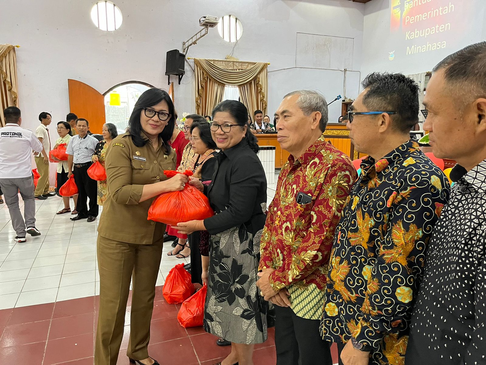 Di akhir ibadah safari Natal, Bupati Minahasa dan Sekda menyerahkan bantuan sosial bagi lansia, disabilitas, pimpinan agama berupa mie instan, minyak goreng, beras, ikan kaleng. Selain itu, diberikan bantuan bencana alam kepada korban berupa bantuan logistik.