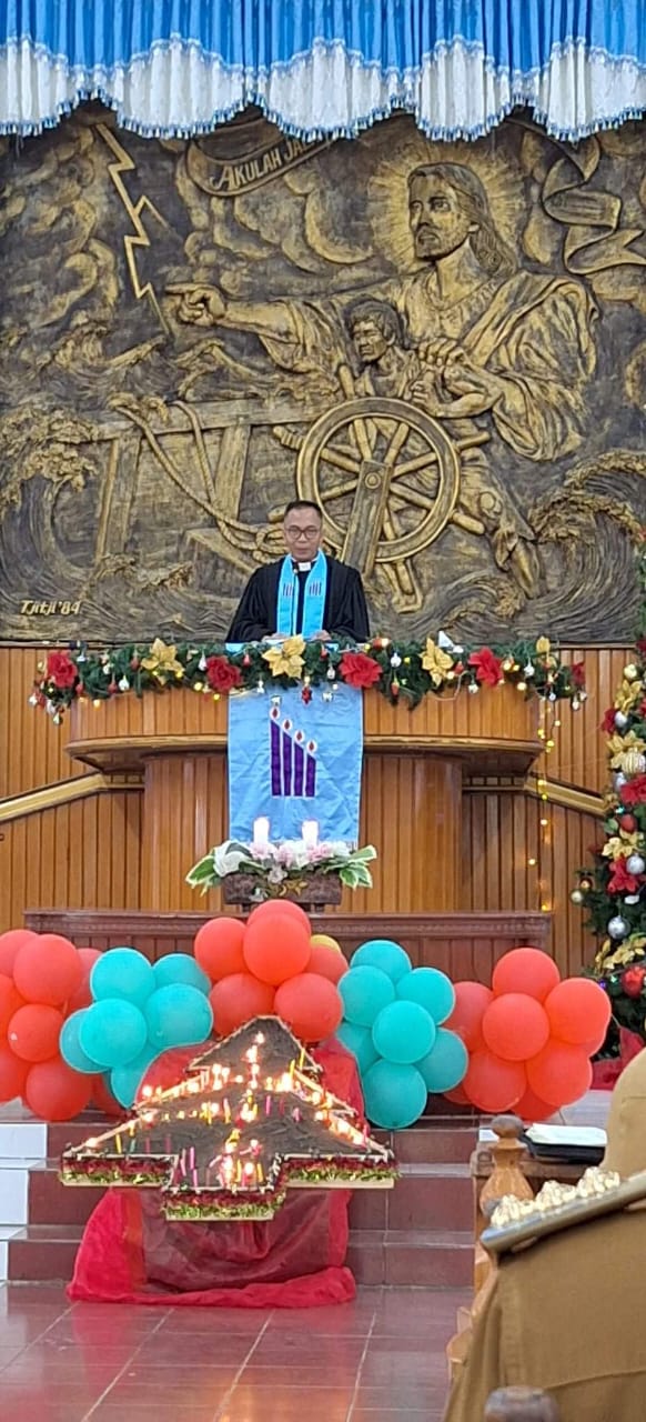 Ibadah perayaan natal ini dipimpin oleh Khadim Pdt. Frangky Apow, S.Th., Ketua BPMJ GMIM Immanuel Kinali.