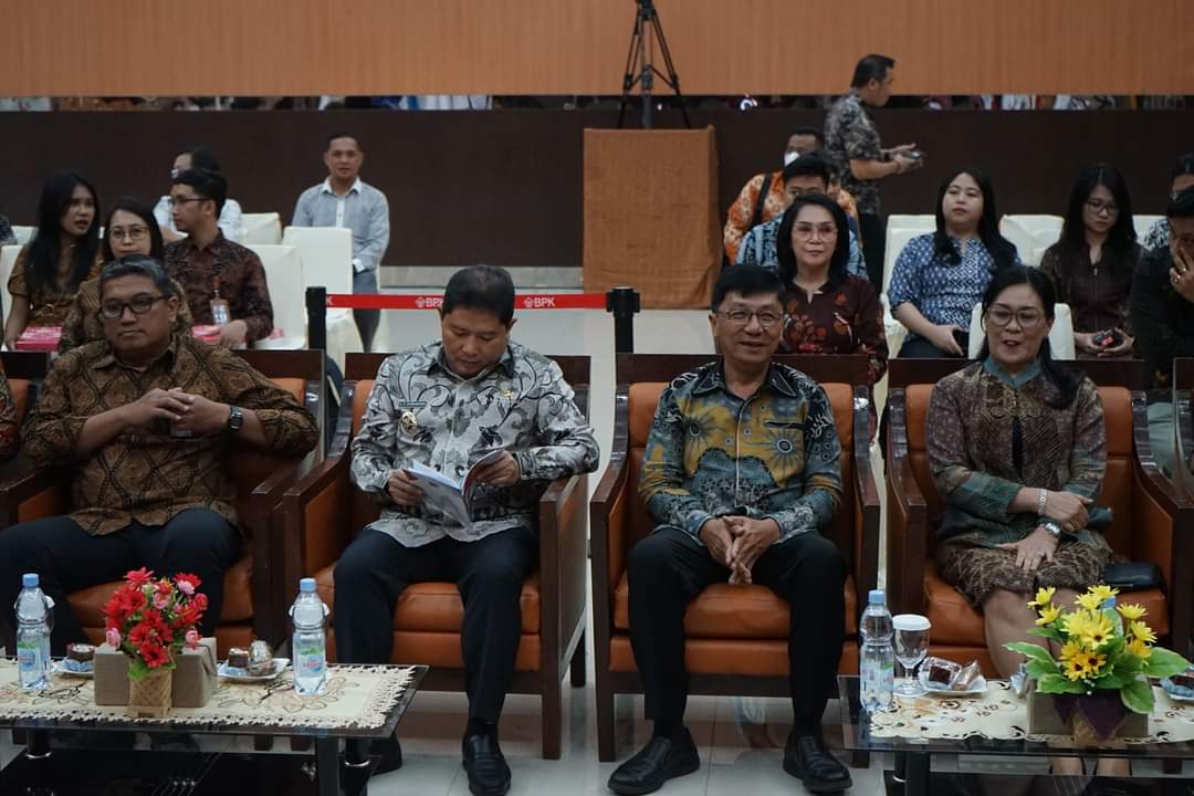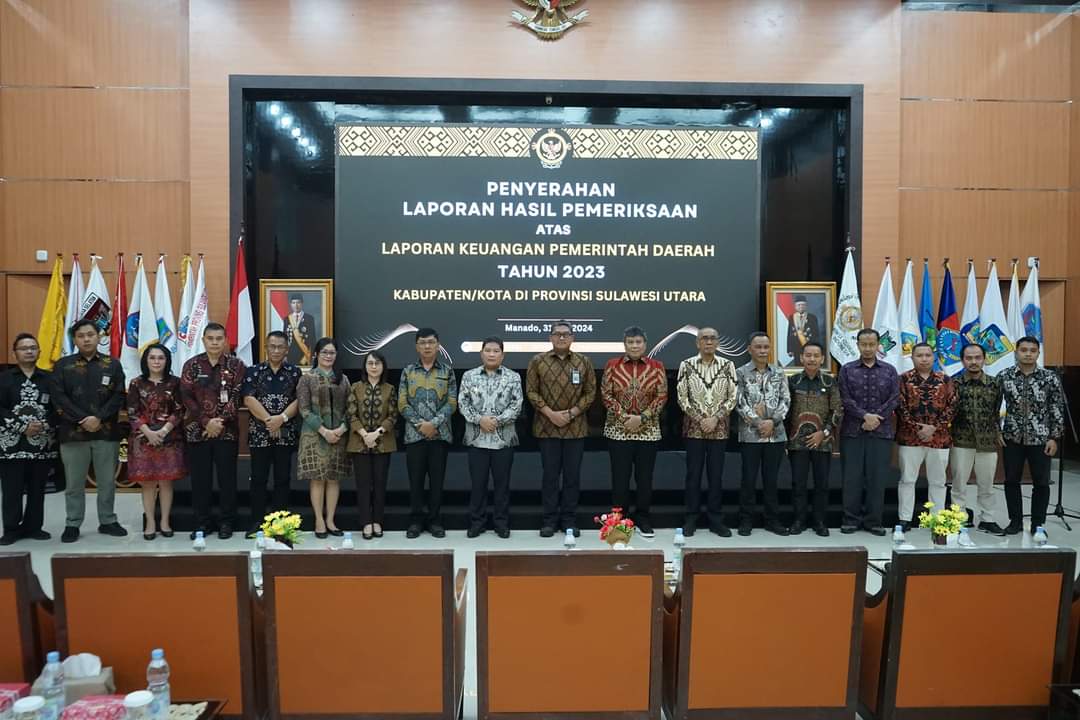 Penjabat (Pj) Bupati Minahasa Dr. Jemmy Stani Kumendong, M.Si, menghadiri penyerahan Laporan Hasil Pemeriksaan (LHP) atas Laporan Keuangan Pemerintah Daerah (LKPD)Tahun 2003, di Kantor BPK-RI Perwakilan Sulawesi Utara, Jumat (31/5/2024) tadi.