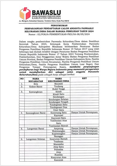 Bawaslu Minahasa Perpanjang Masa Perekrutan Anggota PKD