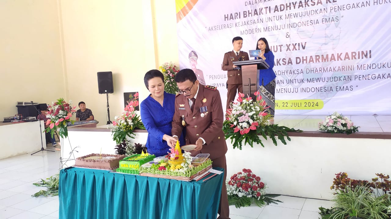 Peringatan hari Bhakti Adhyaksa tahun 2024 merupakan momentum bagi Korps Baju Cokelat di Kota Sejuk untuk mengevaluasi kinerja masing-masing. Seluruh jajaran Kejaksaan Negeri (Kejari) Tomohon mesti melihat kembali, sejauh mana pencapaian pelaksanaan tugas tanggung jawab di 1 tahun ke belakang. Demikian Kepala Kejari (Kajari) Tomohon, Alfonsius Loe Mau, S.H., M.H., ketika menyampaikan kalimat sambutan pada acara hari Bhakti Adhyaksa ke-64 di aula JMS Kejari Tomohon, Senin (22/7).