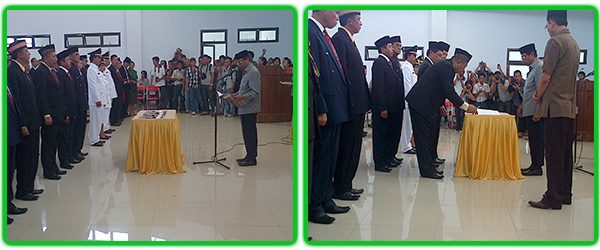 Foto : Bupati saat mengambil sumpah janji para pejabat yang dilantik dan penandatanganan Surat Keputusan.