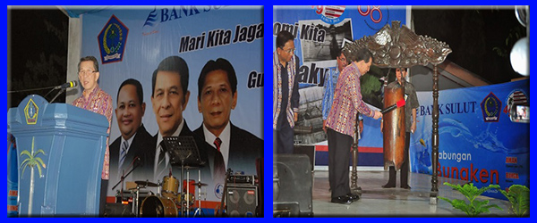 Foto : Gubernur Sulut Sinyo Harry Sarundajang (SHS) saat membawakan sambutan dan saat membuka pameran pembangunan.
