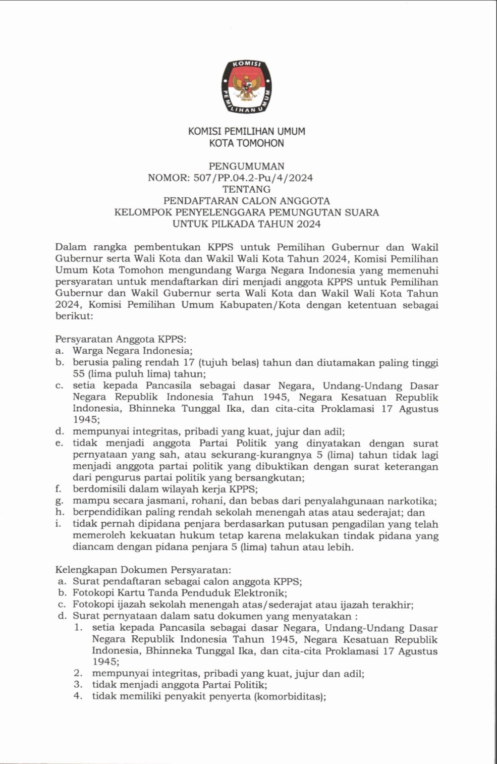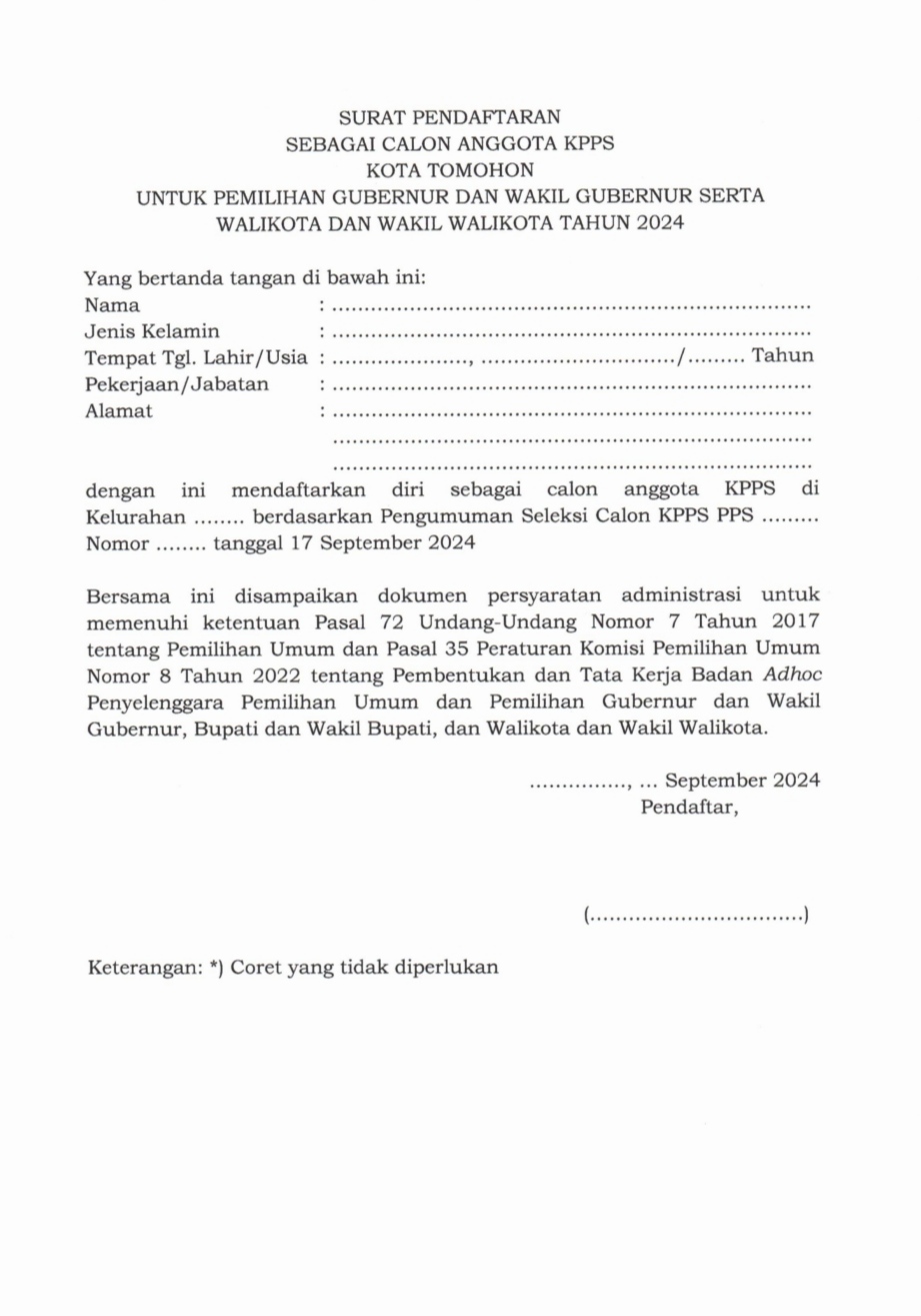 Pendaftaran Calon Anggota KPPS Pilkada 2024
