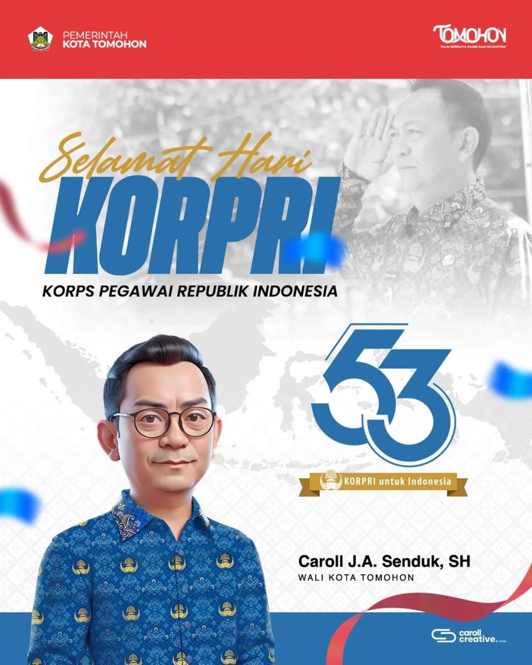 Korps Pegawai Republik Indonesia (Korpri) dipastikan akan mengalami perubahan rupa. Ini diperkuat dengan landasan hukum pada Undang-Undang Nomor 20 Tahun 2023. Demikian Presiden Republik Indonesia (RI), Prabowo Subianto dalam sambutannya dalam upacara peringatan hari ulang tahun (HUT) Korpri ke-53, Pemerintah Kota (Pemkot) Tomohon, yang dibacakan Sekretaris Daerah, Edwin Roring. Upacara dilaksanakan di halaman kantor Wali Kota Tomohon, Jumat (29/11).