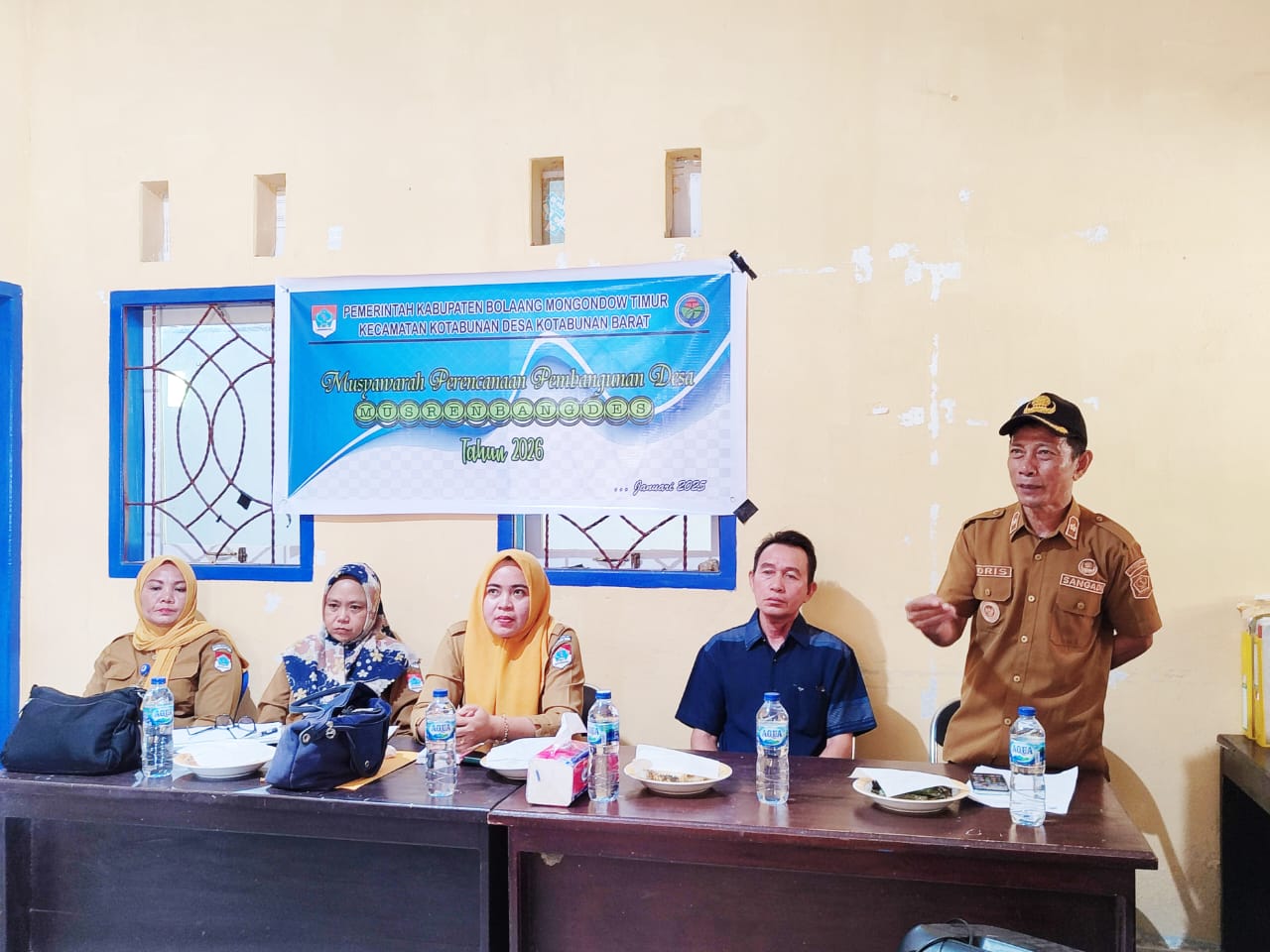Pemerintah Desa (Pemdes) Kotabunan Barat, Kecamatan Kotabunan, Kabupaten Bolaang Mongondow Timur (Boltim) menggelar Musyawarah Perencanaan Pembangunan Desa (Musrenbangdes) tahun anggaran 2026. Kegiatan ini berlangsung di Kantor Desa Kotabunan Barat, Selasa (21/1/2025).