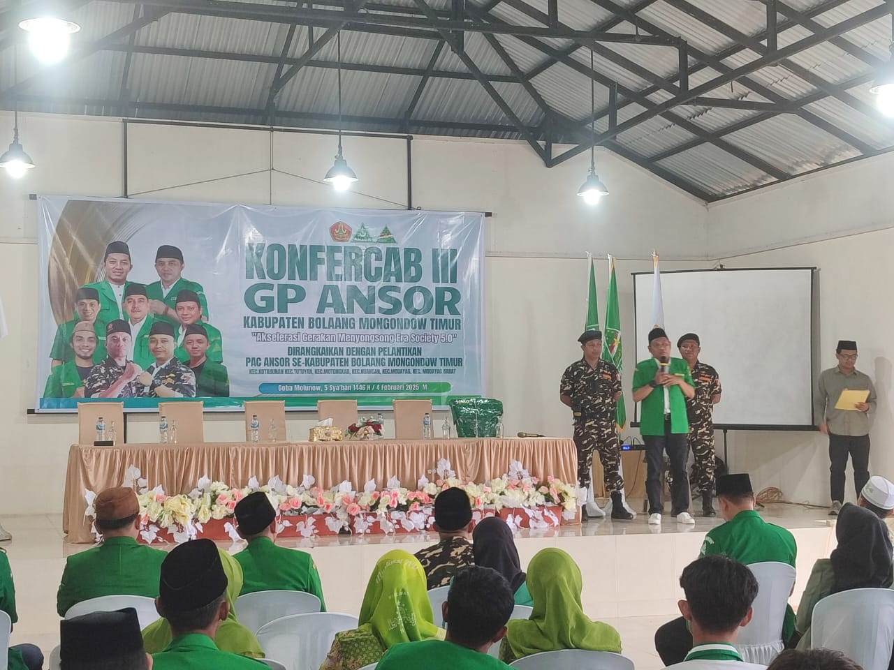 Struktur Pimpinan Cabang (PC) Gerakan Pemuda (GP) Ansor Kabupaten Bolaang Mongondow Timur (Boltim) bergeser. Peralihan komposisi ini tersaji dalam Konferensi Cabang (Konfercab) ke-III.