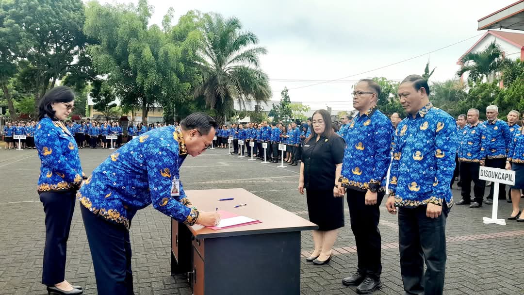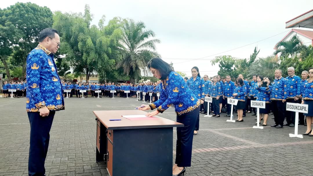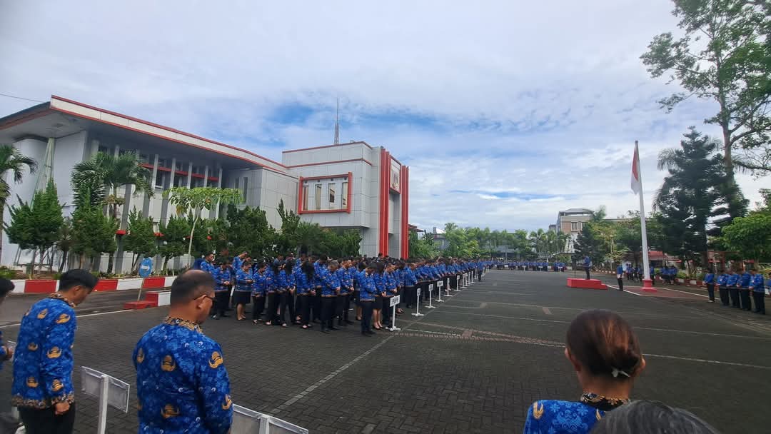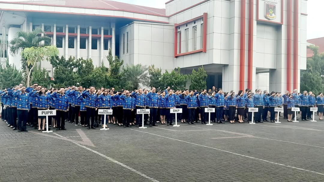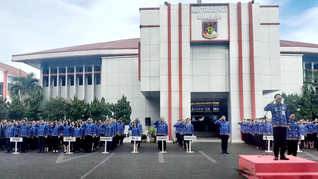 Penjabat (Pj) Bupati Dr. Noudy Tendean, SIP. MSi pimpin apel korpri sekaligus penandatanganan pakta integritas oleh seluruh pejabat di jajaran Pemerintah Kabupaten (Pemkab) Minahasa.