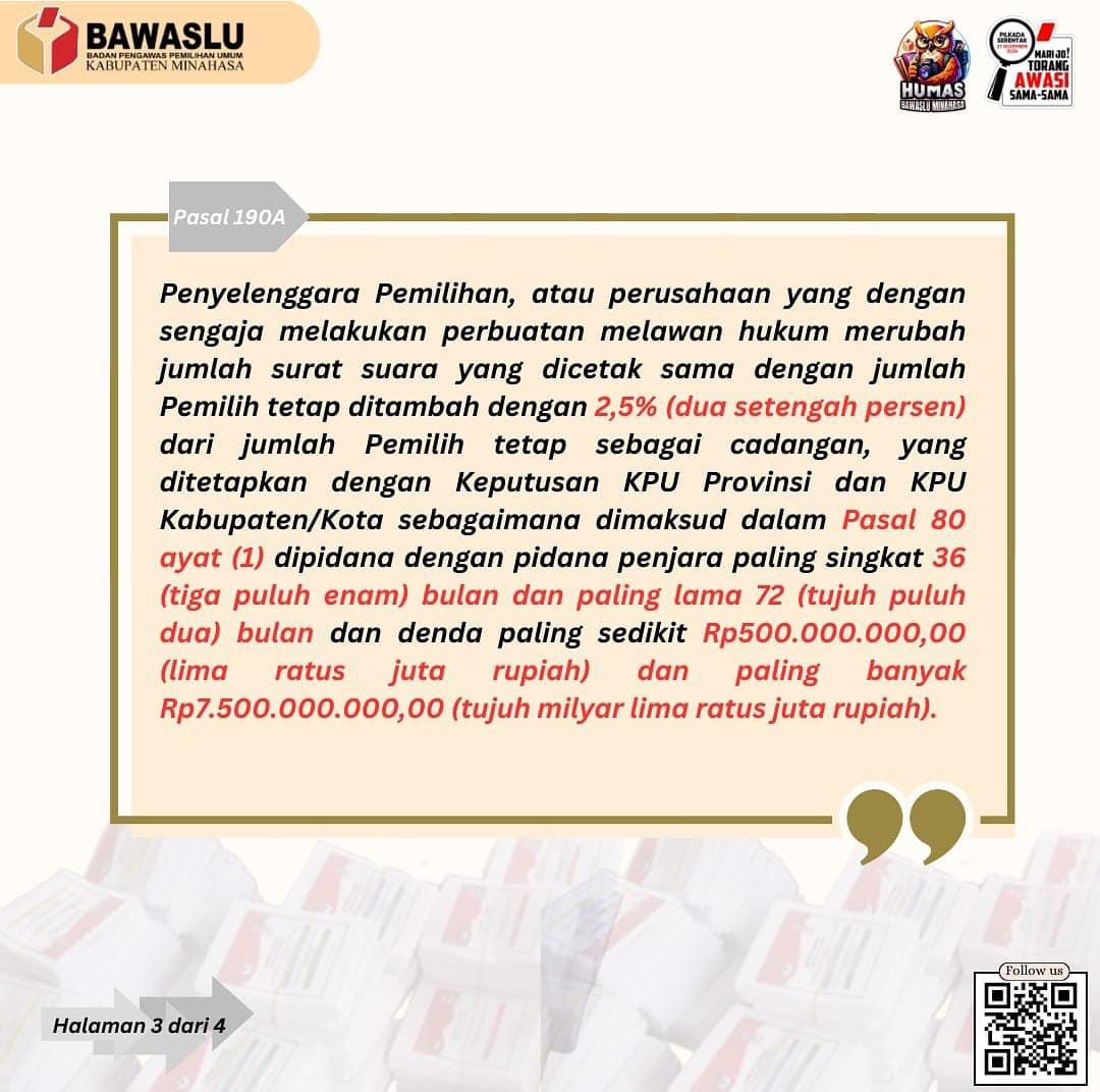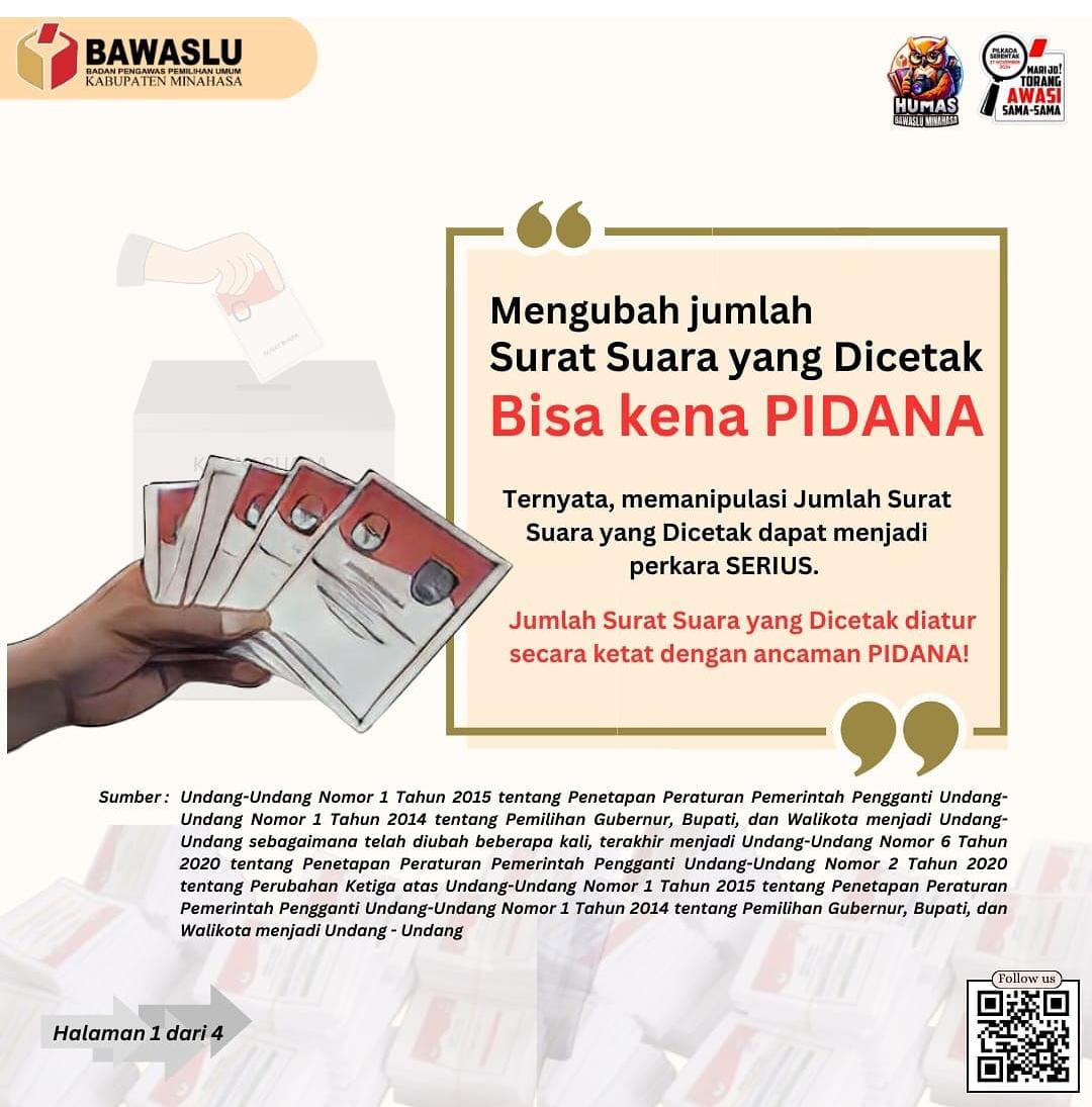Bawaslu Minahasa: Mengubah Jumlah Suara Yang Dicetak Bisa Kena Pidana