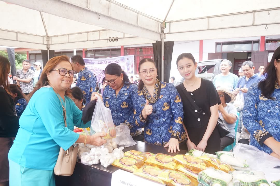 Wakil Bupati (Wabup) Minahasa, Vanda Sarundajang, SS (VaSung) turun langsung melayani masyarakat dalam kegiatan Gerakan Pangan Murah (GPM) yang digelar di halaman Kantor Kecamatan Kawangkoan, Kamis (17/4/2025) pagi hingga siang.