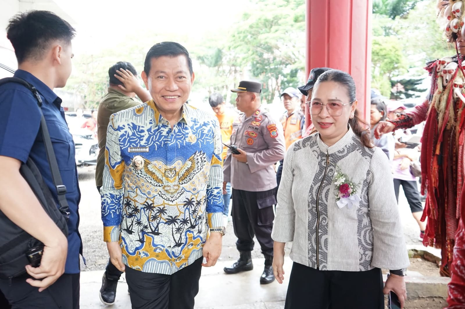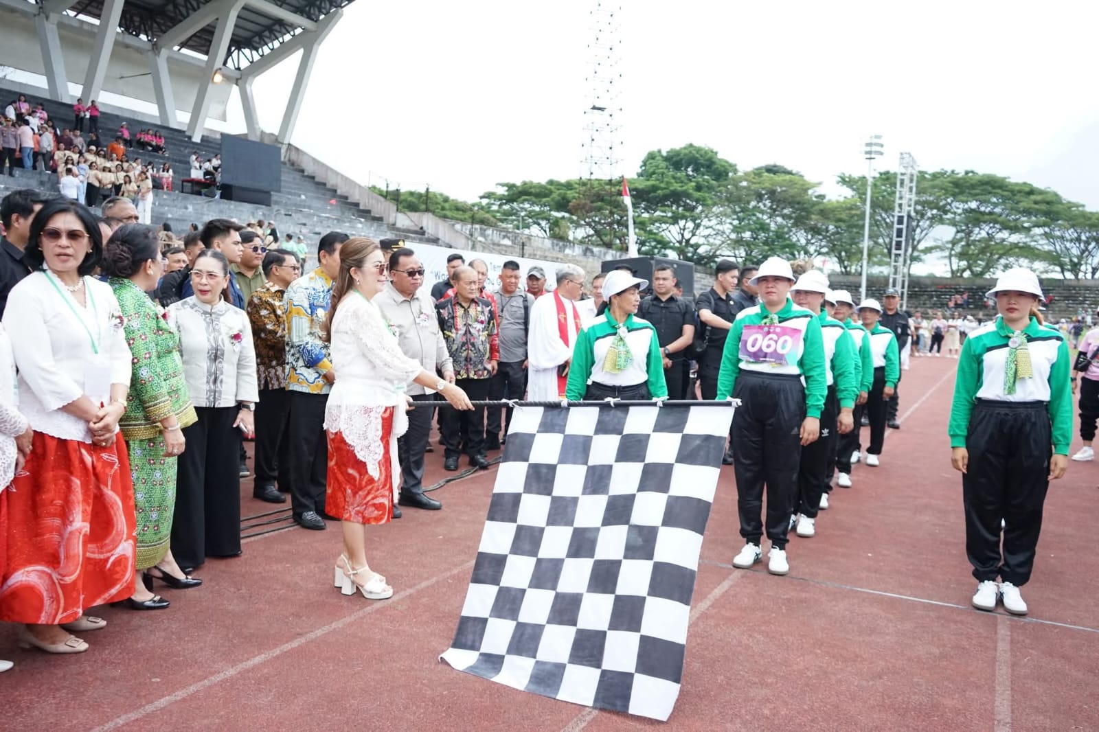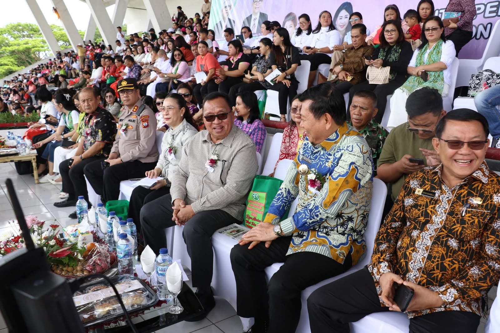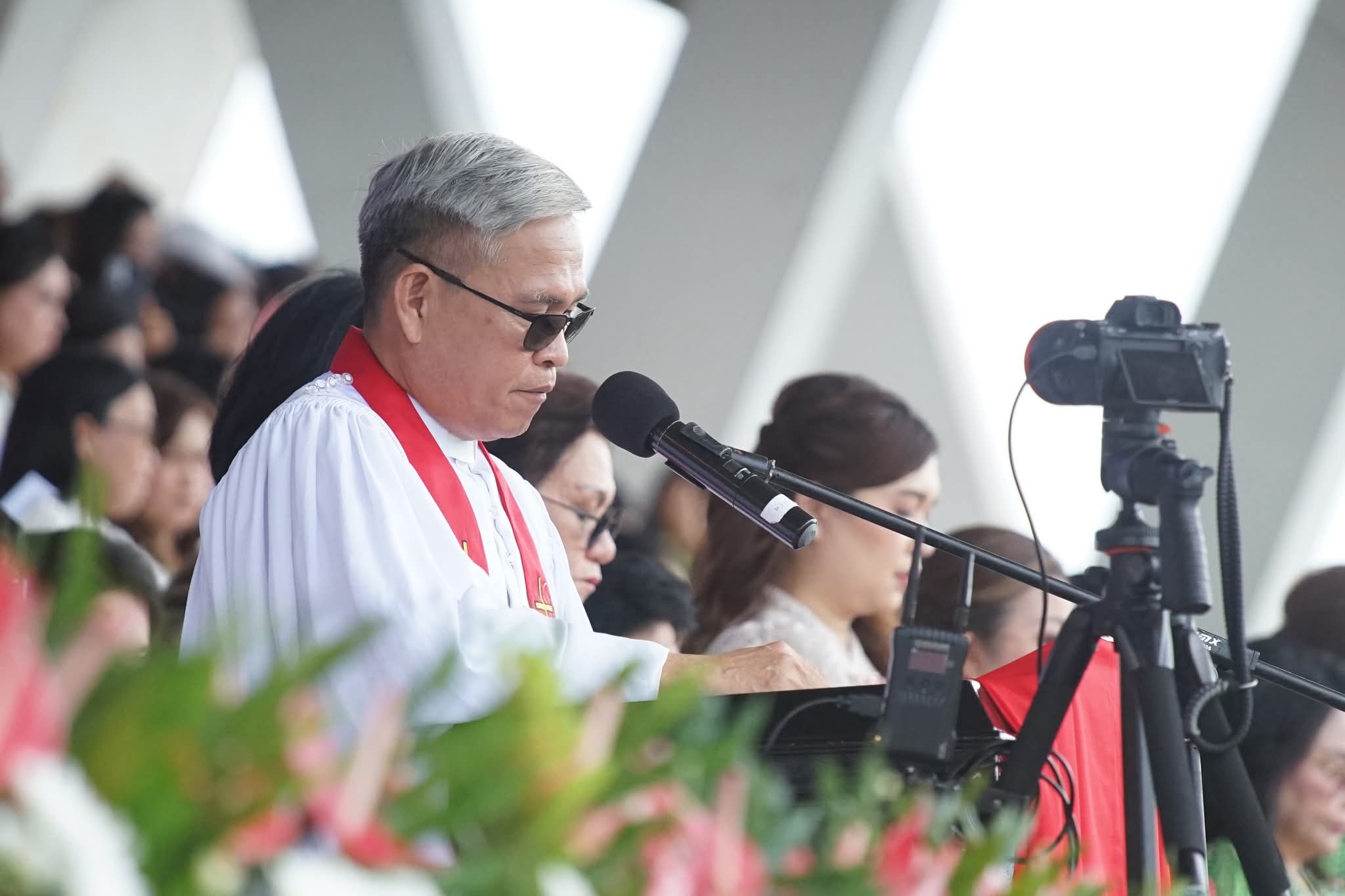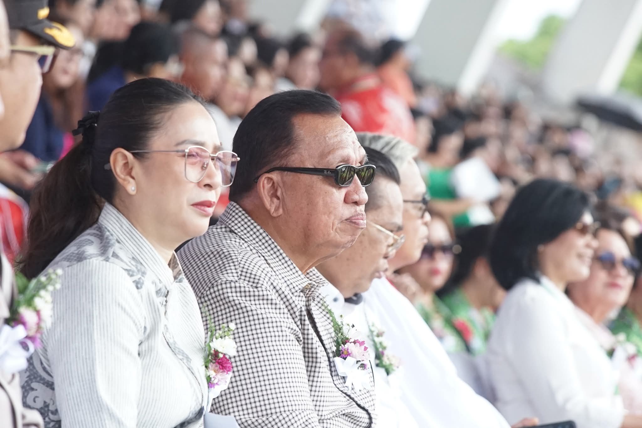Bupati Minahasa, Robby Dondokambey, S.Si, MAP, bersama Ketua TP-PKK Kabupaten Minahasa Martina Dondokambey - Lengkong SE, selaku Ketua Umum Panitia Hari Persatuan (HAPSA) Wanita/Kaum Ibu (WKI) Sinode GMIM Tahun 2025 menghadiri Ibadah Agung dan Pembukaan Rangkaian kegiatan perayaan HAPSA yang bertempat di Lapangan Stadion Maesa Tondano, pada Jumat (13/6).