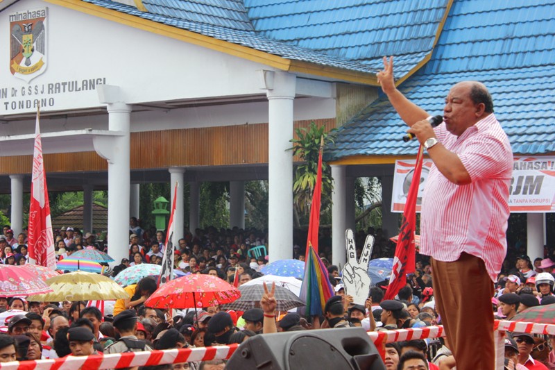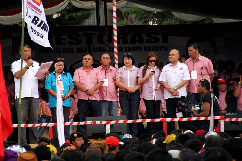 HAG menjelaskan misi restorasi Minahasa menuju era baru tanpa korupsi dihadapan puluhan ribu pendukung.