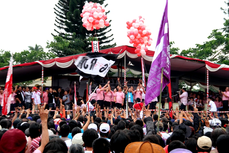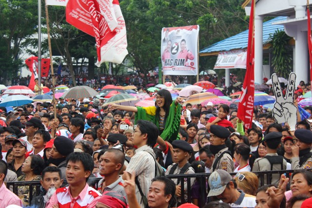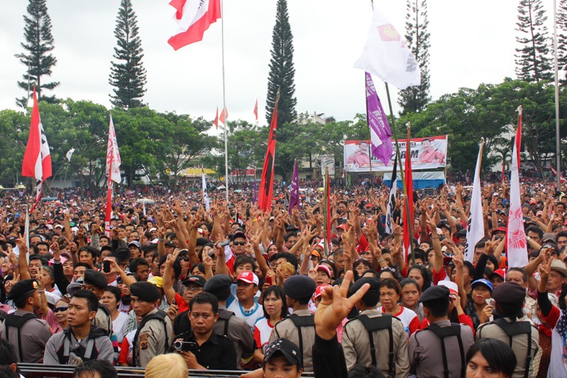 Massa pendukung HAG-RJM yang tumpah ruah di lapangan Sam Ratulangi Tondano.