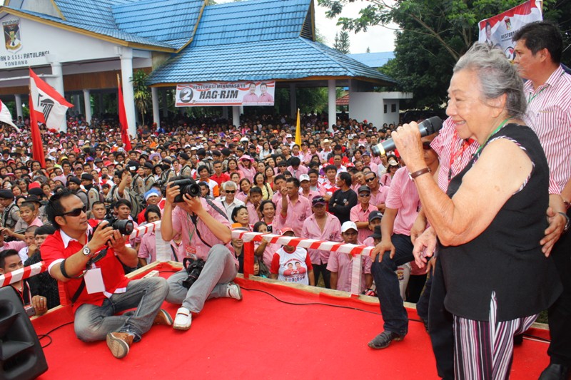 Putri DR Sam Ratulangi, DR Emillia Agustine Ratulangi yang datang dari Belanda tampil menyampaikan dukungan bagi pasangan HAG-RJM.