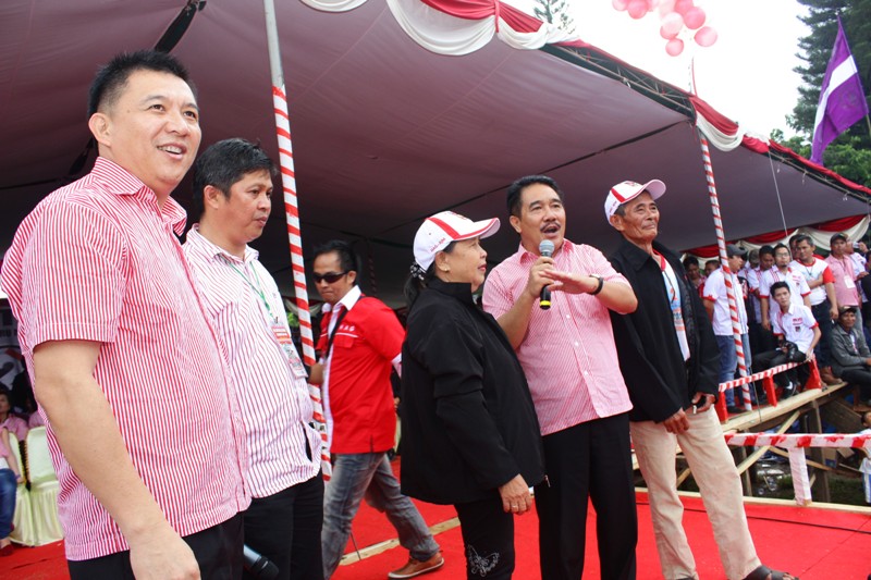 HAG-RJM berinteraksi di panggung kampanye dengan dua warga Minahasa.