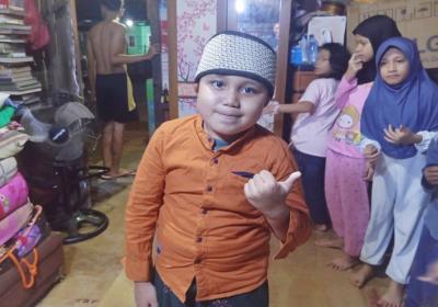 Kebahagiaan sederhana namun penuh makna terpancar dari wajah ceria..