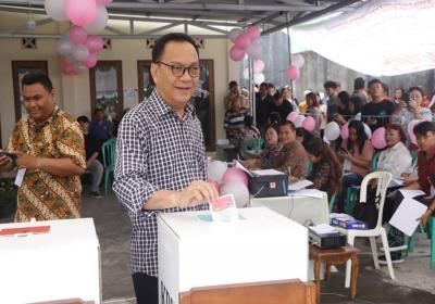 Wali Kota Tomohon, Caroll Joram Azarias Senduk melakukan pencoblosan..