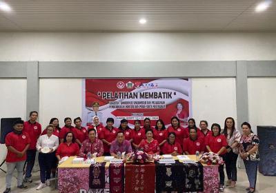 Wali Kota Tomohon, Carrol JA Senduk SH menyerahkan peralatan membatik..
