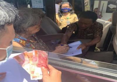Penyaluran bantuan sosial berupa pembagian uang tunai untuk warga..