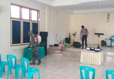Mencegah penyebaran virus corona, tim gabungan Kepolisian Sektor..